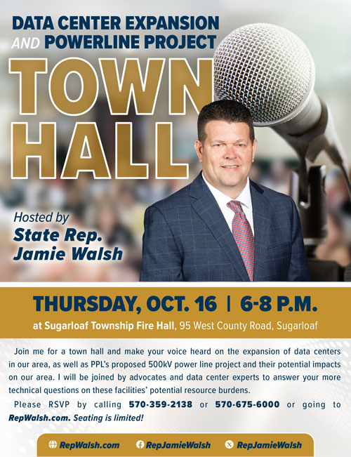 Join me for a town hall on the expansion of data centers in our area, as well as PPL’s proposed 500kv power line project and their potential impacts on our area.